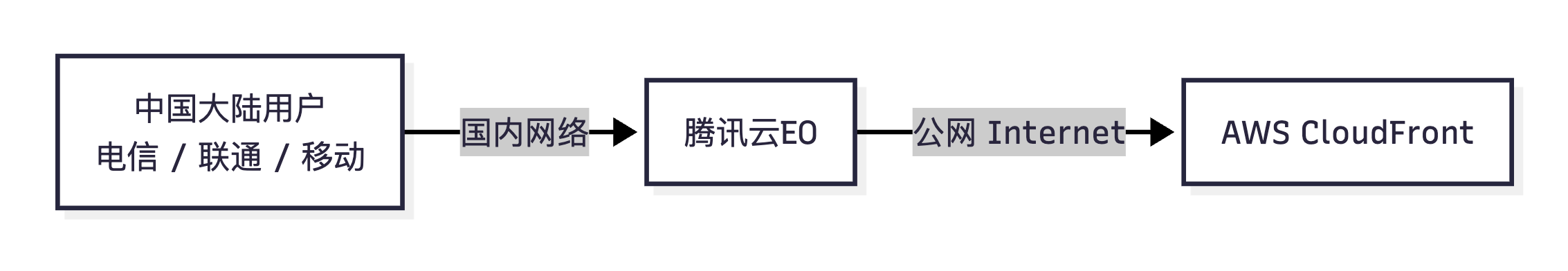 EO 默认直接通过公网回源海外源站,跨境链路质量完全取决于运营商,没有任何保证。实际使用中经常出现回源连接失败、延迟波动大的情况,体验较差。